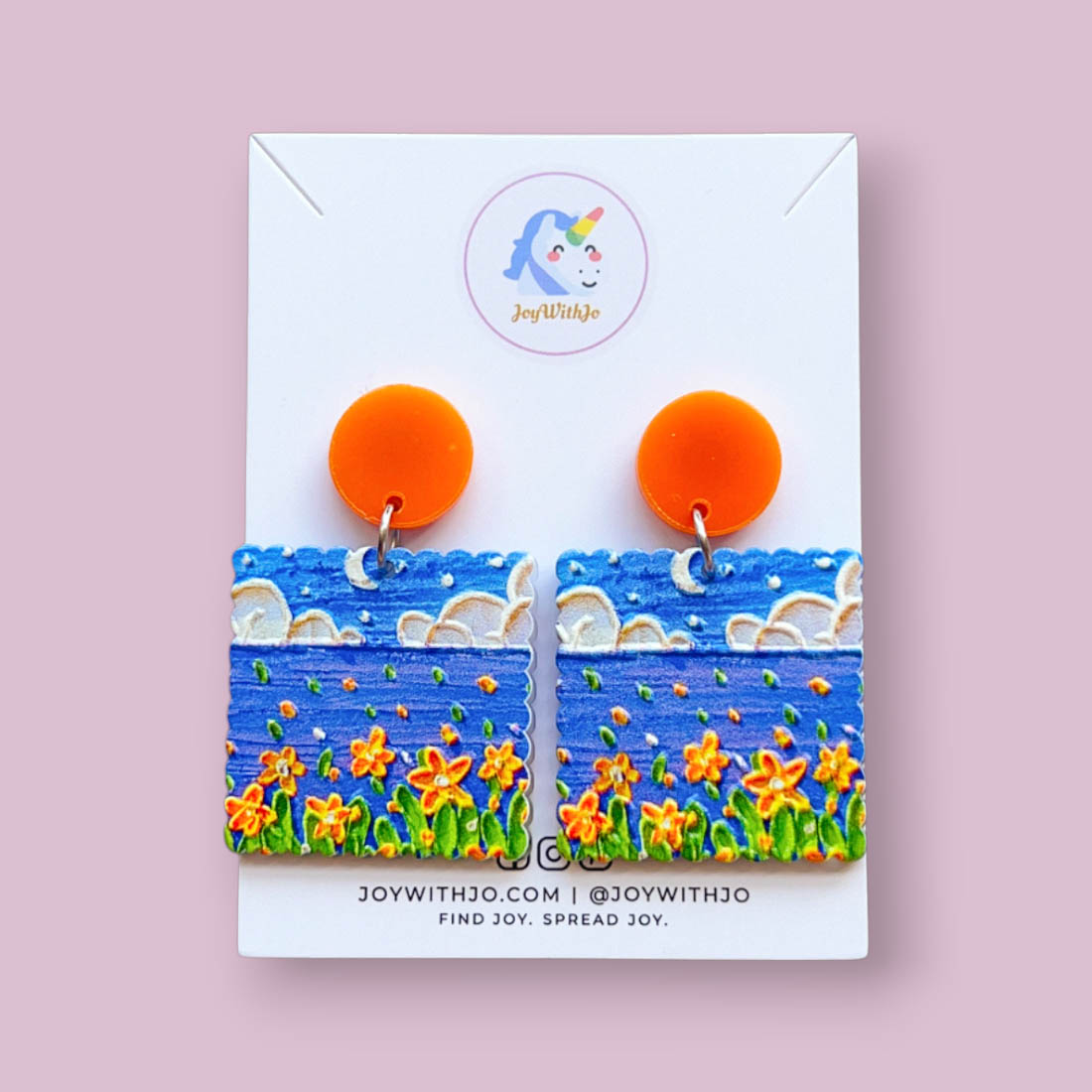 β€œFlowers are the music of the ground.”― Edwin Curran. Fill your days with colour and joy with our newest collection of acrylic floral earrings that are fun, cute and great for everyday wear. These Betty Skies Embossed Acrylic Floral Earrings is a must have in your earring collection! 🌸🌼
